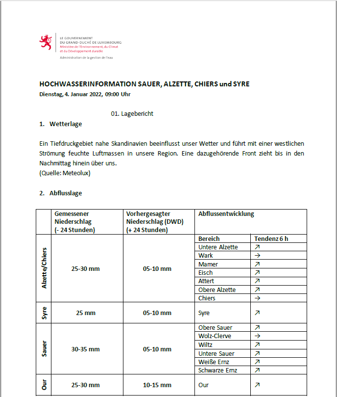 Dies betrifft u.a. die Seite inondations.lu und die Meine Pegel App.
