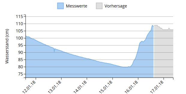 Wie an den anderen Pegeln auch, ist die Vorhersage für einen maximalen Zeitraum von 24 Stunden verfügbar.