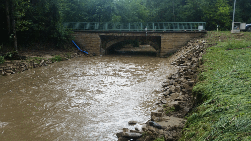 Aufgrund der heftigen Niederschläge und der daraus resultierenden Flutwelle in der Nacht von Donnerstag auf Freitag wurde unsere Messstation im Müllerthal stark beschädigt. Es werden zwar noch Wasserstände gemessen, durch die stark veränderten hydraulischen Verhältnisse sind diese jedoch nicht mehr repräsentativ. Grössere Arbeiten müssen durchgeführt werden.